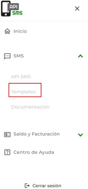 En el menú lateral izquierdo ingresa a SMS y selecciona Templates.