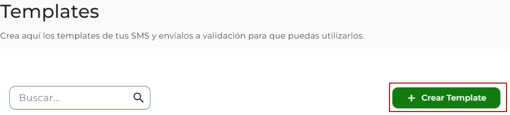 Dentro de Templates da click en “Crear Template” que se encuentra en la parte superior derecha de la pantalla.