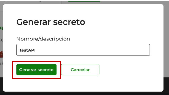 Se abrirá una ventana emergente donde deberás escribir un nombre para el secreto y dar click en “Generar secreto”.