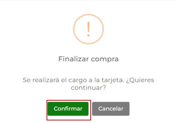 Te aparecerá una notificación para confirmar el cargo a tu tarjeta, al dar click en “Confirmar” se realizará la compra.